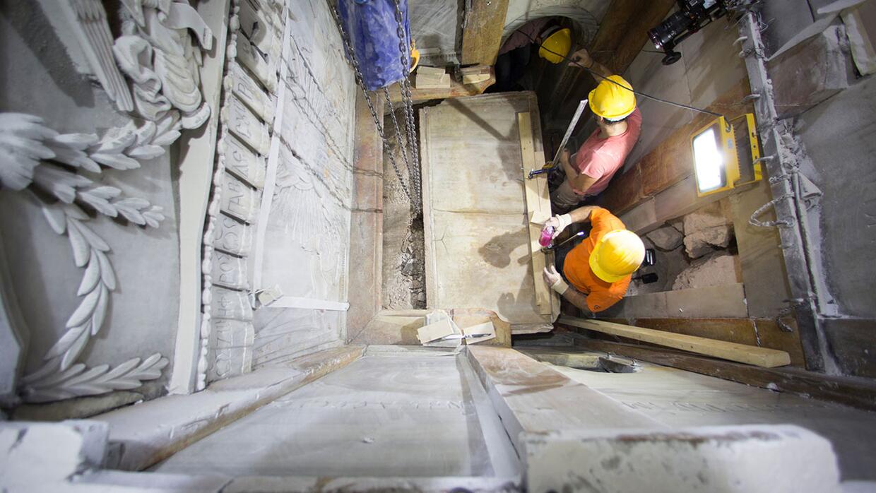 labores, publicó que cuando la losa de la tumba fue retirada,